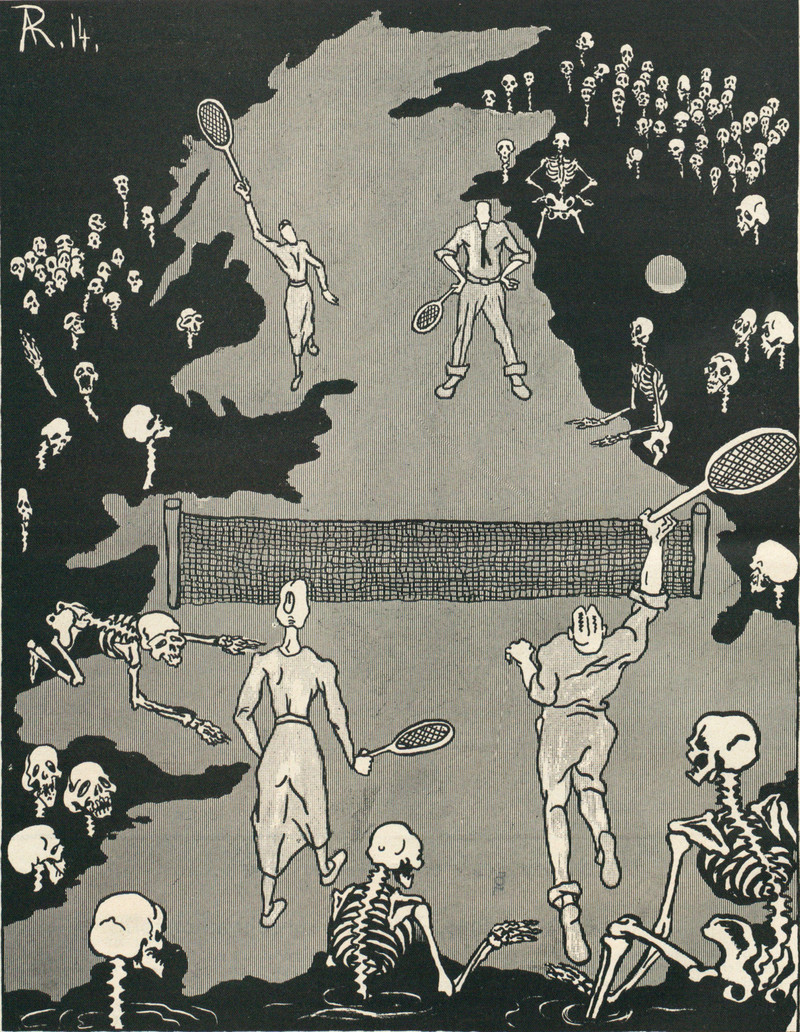 #vintage illustration #macabre #death #skeleton #tennis #illustration