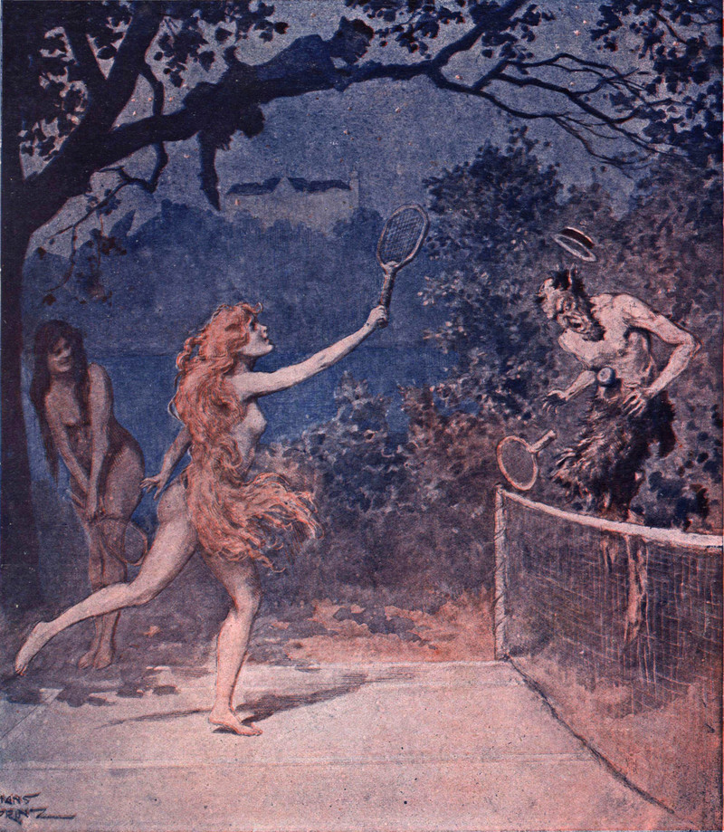 #vintage illustration #devil #satyr #tennis #illustration