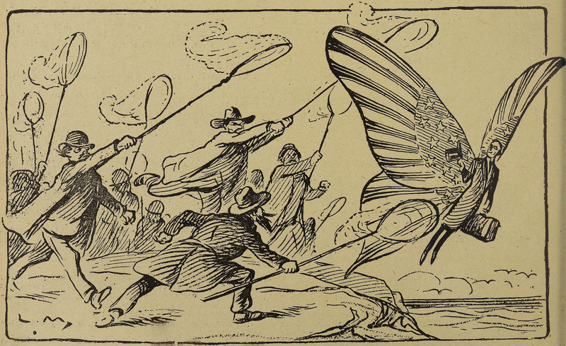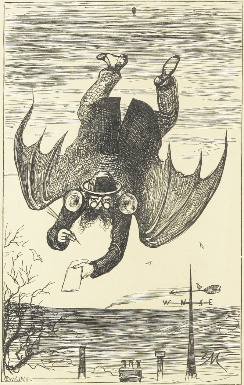 Here's a precursor to the flying monkeys in The Wizard of Oz.  From Le Courrier Français, 1887.
