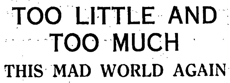 "Too little and too much. This mad world again." From The Children's Newspaper, 1934.
