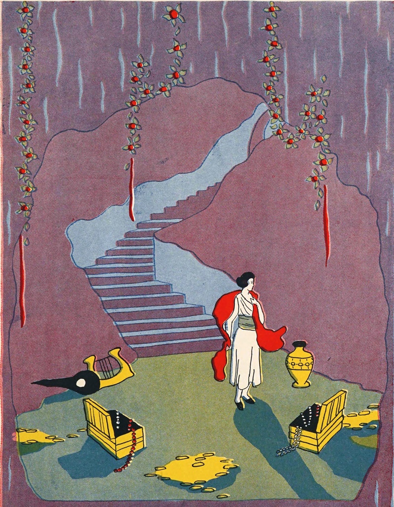 #vintage illustration #vintage yearbook #cave #yearbook #1920s #treasure chest #illustration