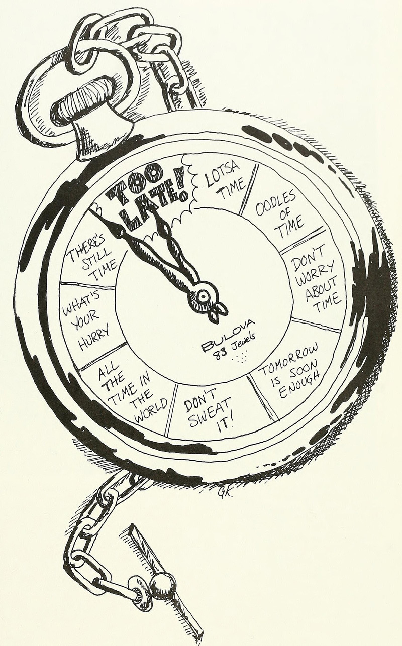 The administrator pictured here (we don't know his particular pet slogan) is from the 1986 Ole Miss yearbook.