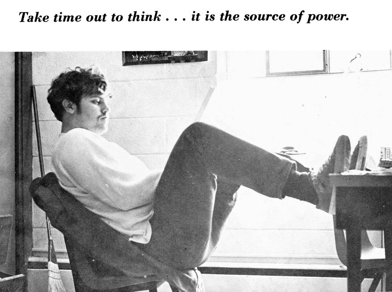 "Take time out to think … it is the source of power."  From Chowan's 1974 yearbook.