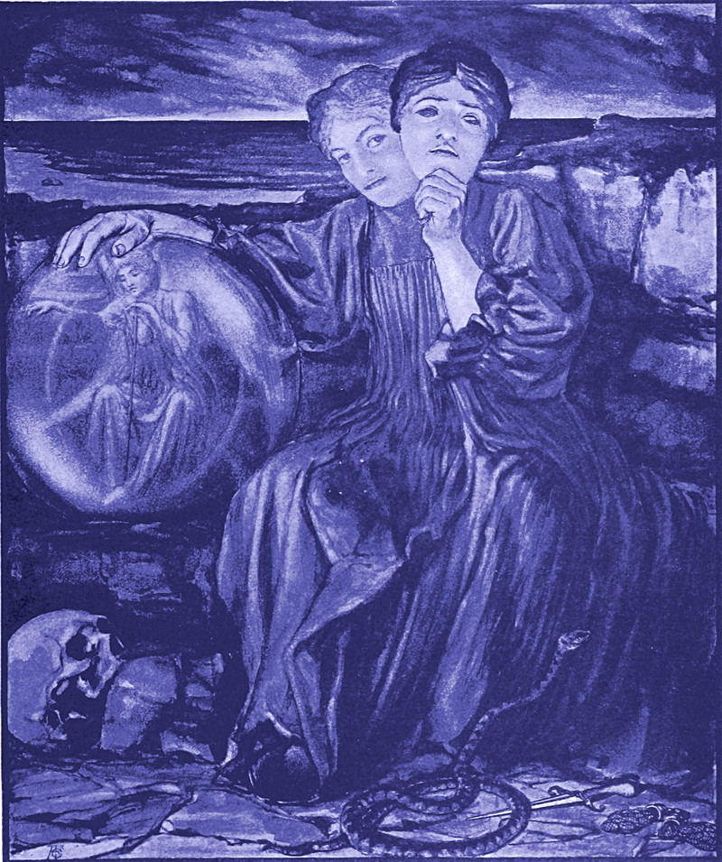 The central figure is perhaps wondering, "So it's snakes, wings, and fire on the one side, and what's the other side promising again?" From The New England Primer by Heman Humphrey, 1830. Speaking of which, what exactly are a snowball's chances in hell? See A Snowball's Chance in Hell.