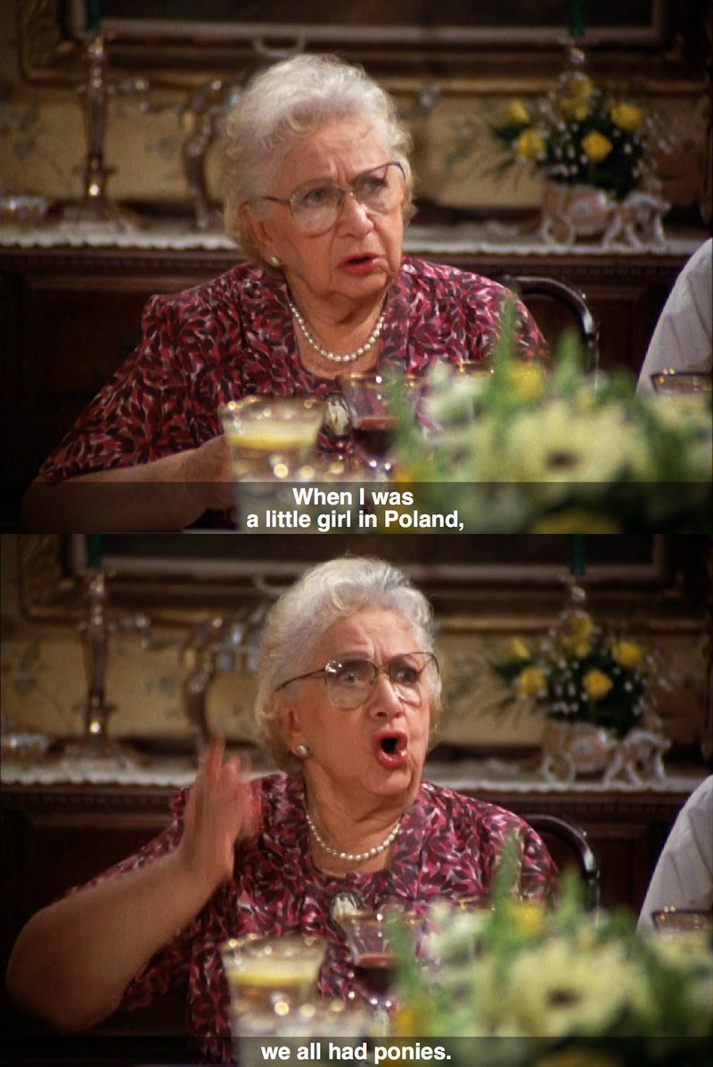 The classic Bewitched episode "Solid Gold Mother-in-Law" offers a precursor to the Seinfeld episode "The Pony Remark."