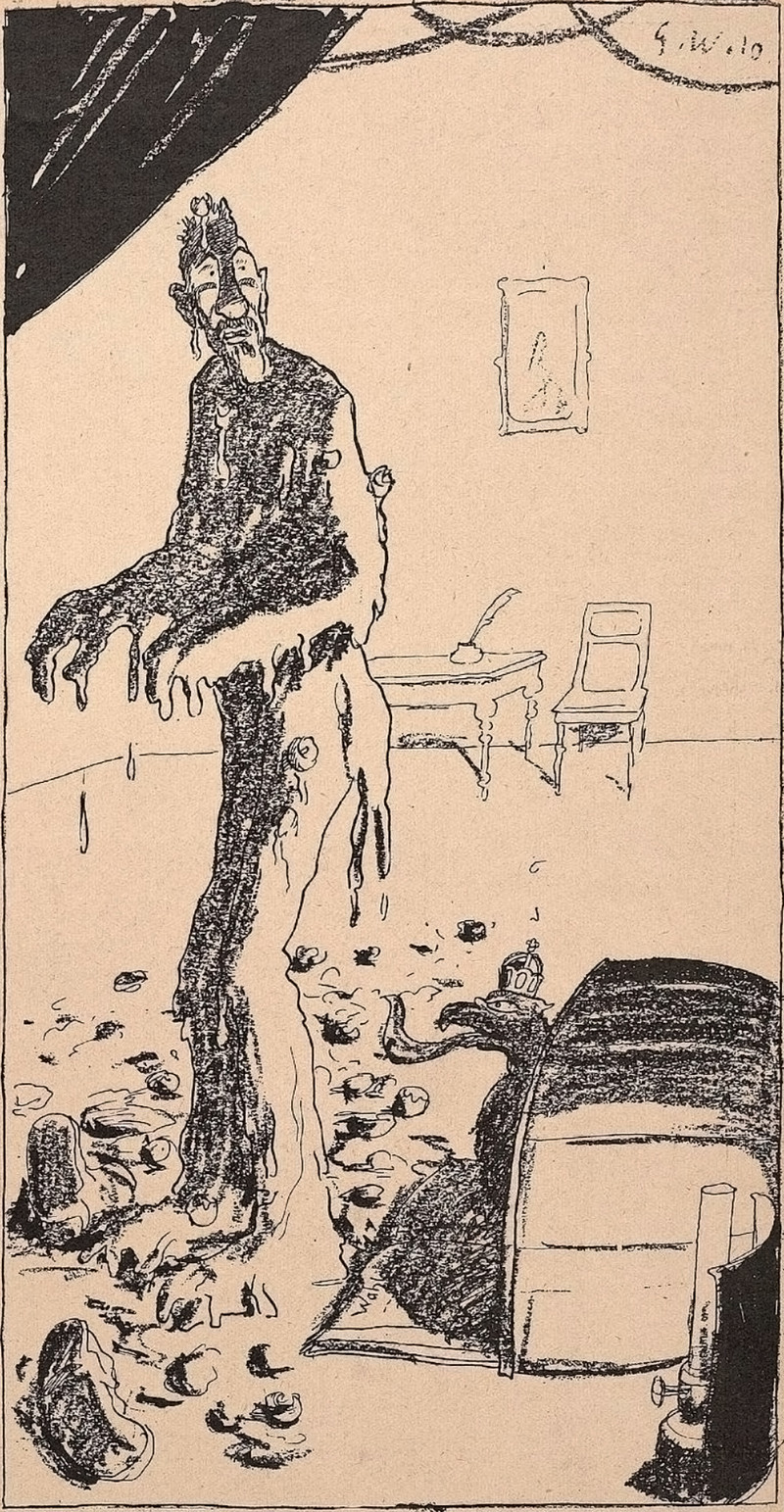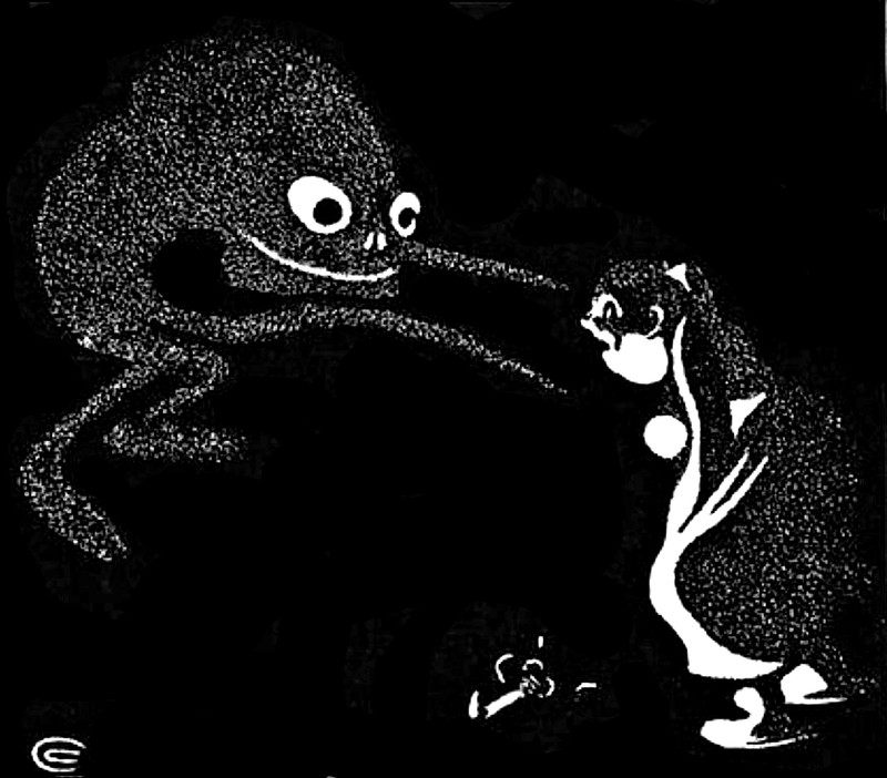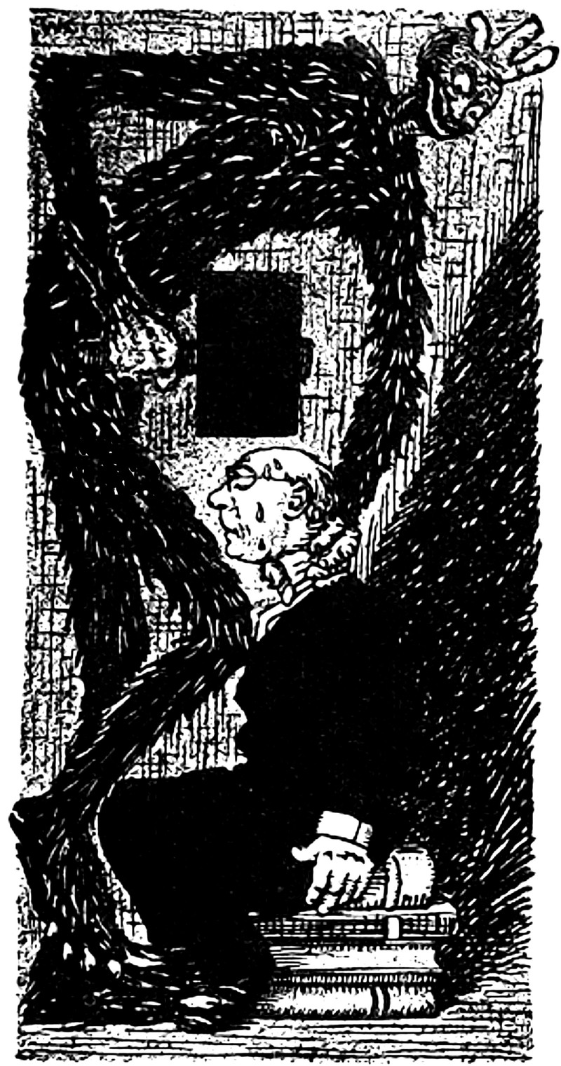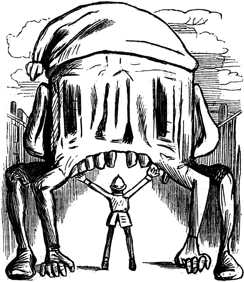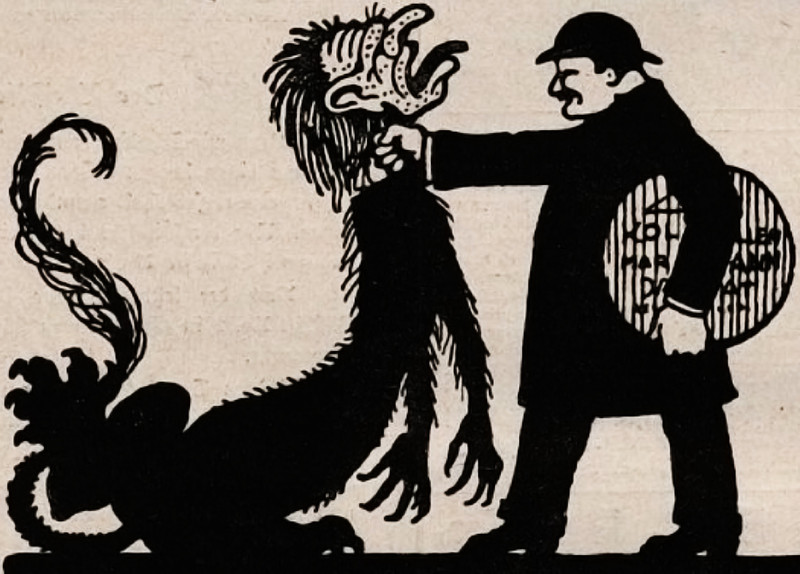 Sir Marmalade the Mouldy thumbs his nose at a sea monster. From Judy, Or The London Serio-Comic Journal, 1882.