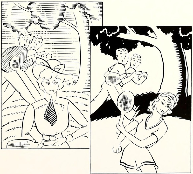 #vintage illustration #tennis #vintage yearbook #yearbook #1930s #illustration #then and now