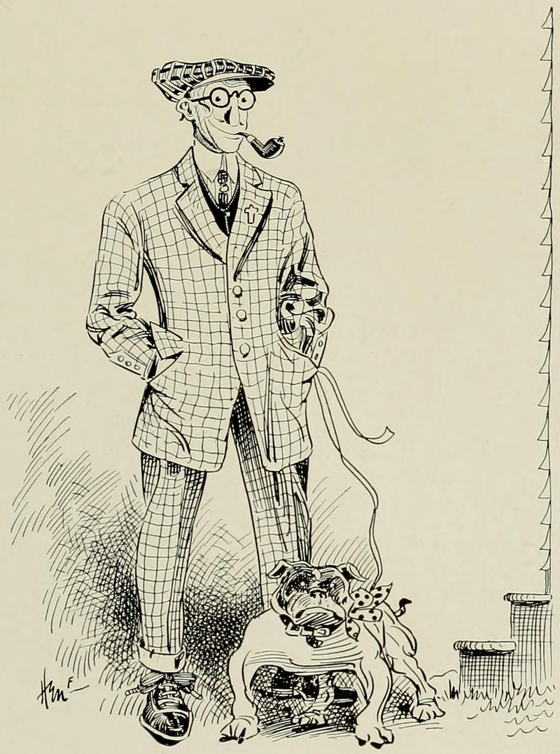 #vintage illustration #fashion #vintage fashion #vintage yearbook #yearbook #pipe smoker #walking the dog #illustration #pet walker #1910s
