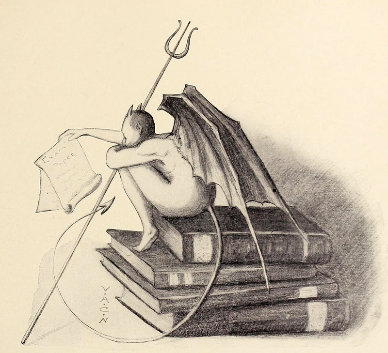 #vintage illustration #demon #imp #pitchfork #vintage yearbook #yearbook #1900s #illustration
