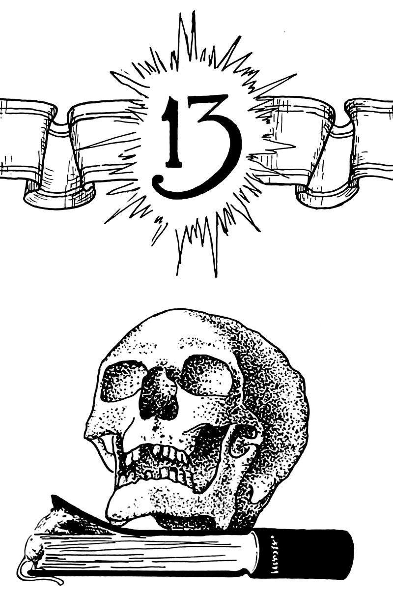 #vintage illustration #skull #occult #vintage yearbook #yearbook #thirteen #list