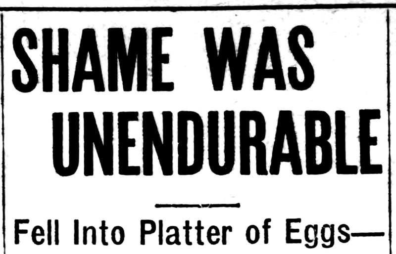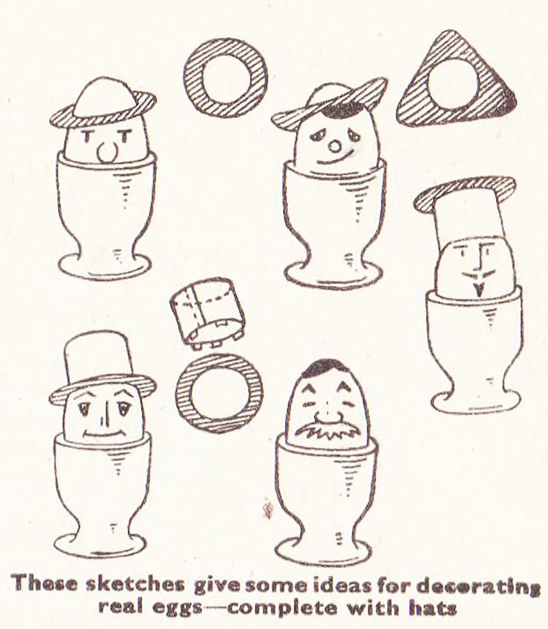 The six stages of egg-swallowing: consideration, hesitation, cogitation, determination, expectation, and jubilation. From The Children's Newspaper, 1919.