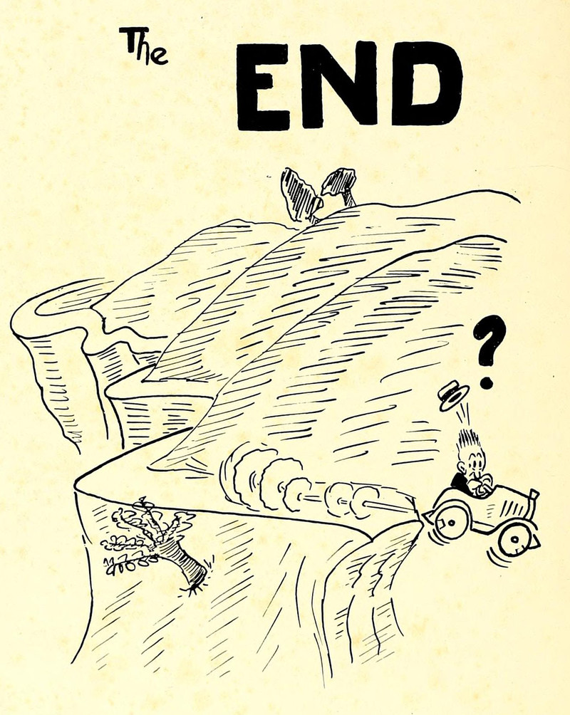 #vintage illustration #finis #vintage yearbook #yearbook #the end #off a cliff