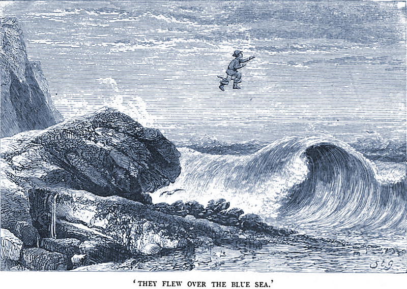 "They flew over the blue sea." From Harry's Big Boots, written and illustrated by S. E. Gay, 1873.