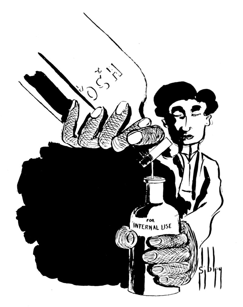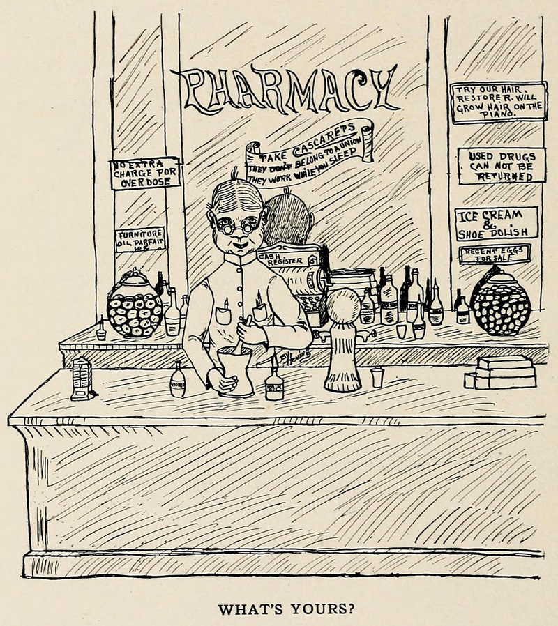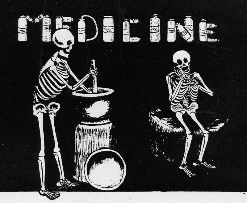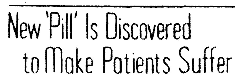 "New 'pill' is discovered to make patients suffer." From The Aberree, 1954.