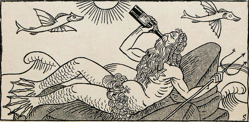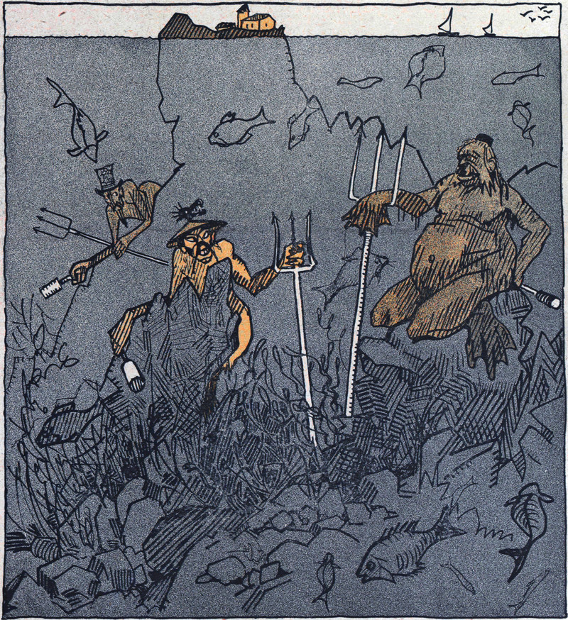 King Neptune gets his kicks by making sailors sick. From Jugend, 1904.