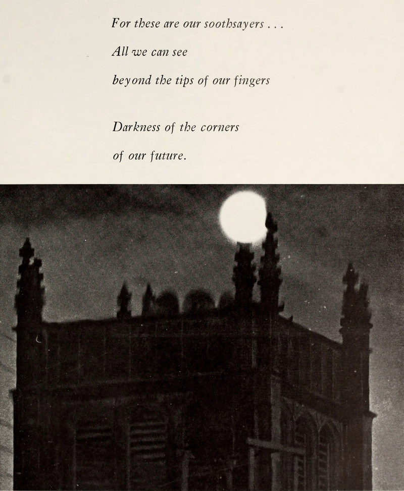 "For these are our soothsayers ... All we can see beyond the tips of our fingers. Darkness of the corners of our future." From Texas Wesleyan's 1968 yearbook.