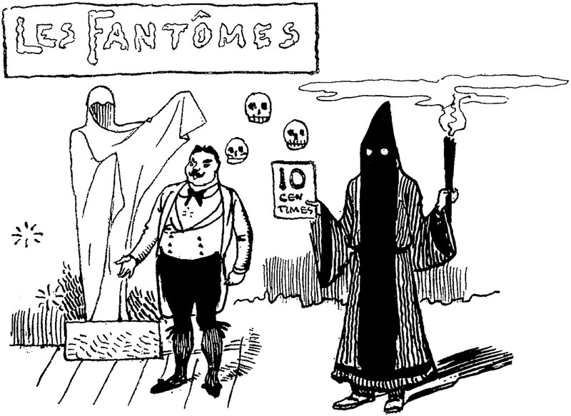 When the boat has eyes, bat wings, and shouded figures aboard, double check your ticket and make sure you're on the right pier. From Lustige Blätter, 1906.
