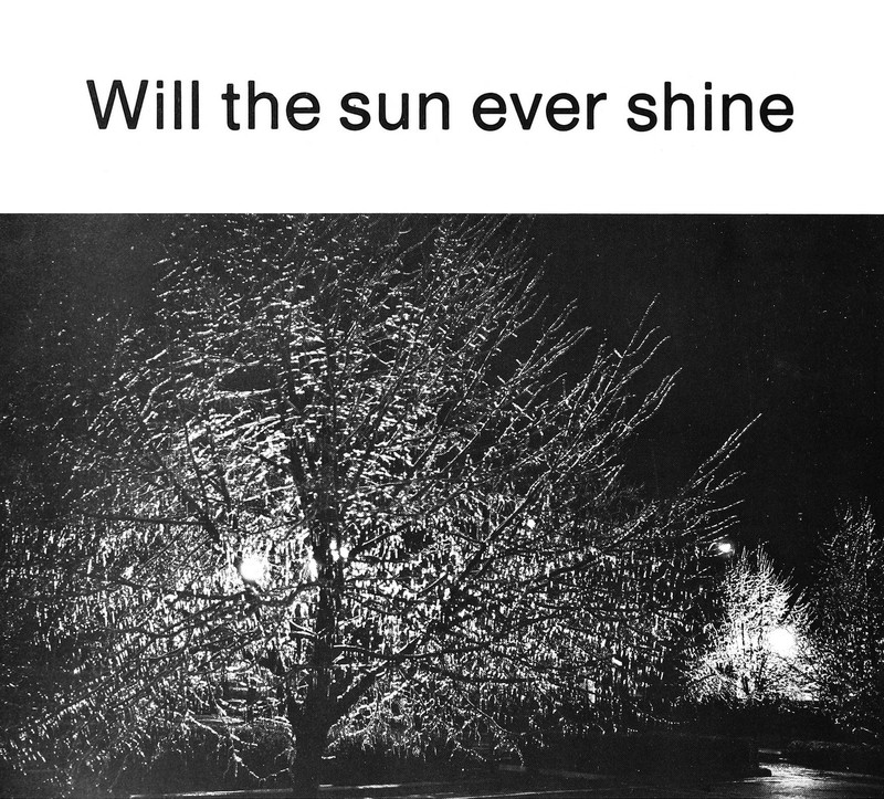Mysterious, glowing forests spread through old yearbooks.  From Indiana State University's 1976 yearbook.