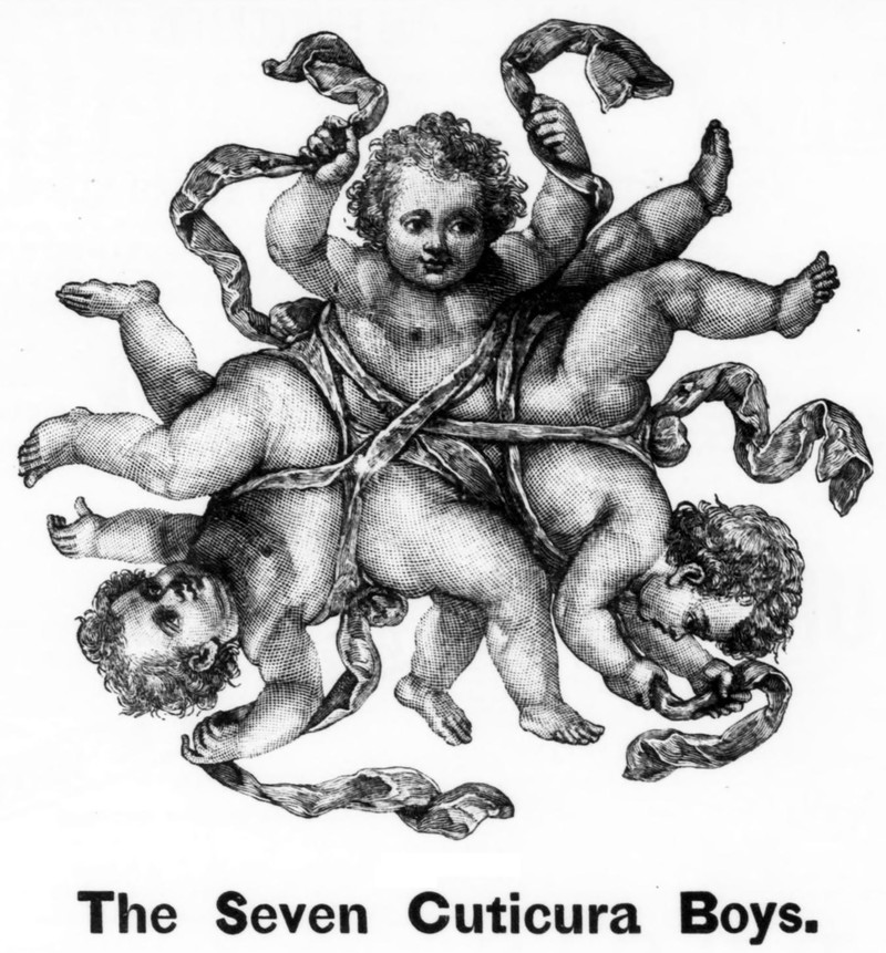 At first glance, we assumed this was a Biblically-accurate angel. It's an optical illusion of seven cherbus within a trinity, in a soap ad from Youth's Companion, 1887.