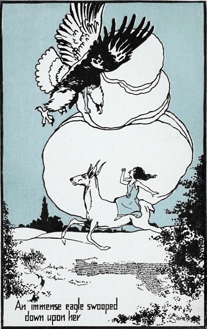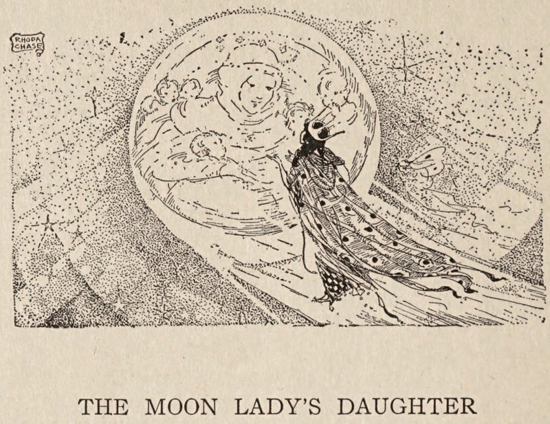 The moon lady's daughter. From Sandman Twilight Stories by Abbie Phillips Walker and illustrated by Rhoda C. Chase, 1918.