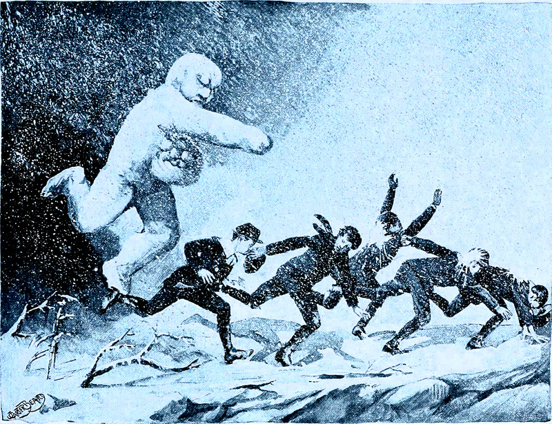 "Combat between the man of the earth and the man of the sea," from Peru: Incidents of Ravel and Exploration in the Land of the Incas by Ephraim George Squire, 1877.