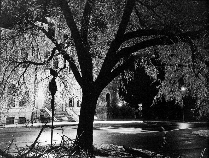 Glowing trees spread through the pages of old yearbooks.  From Kansas State University's 1995 yearbook.