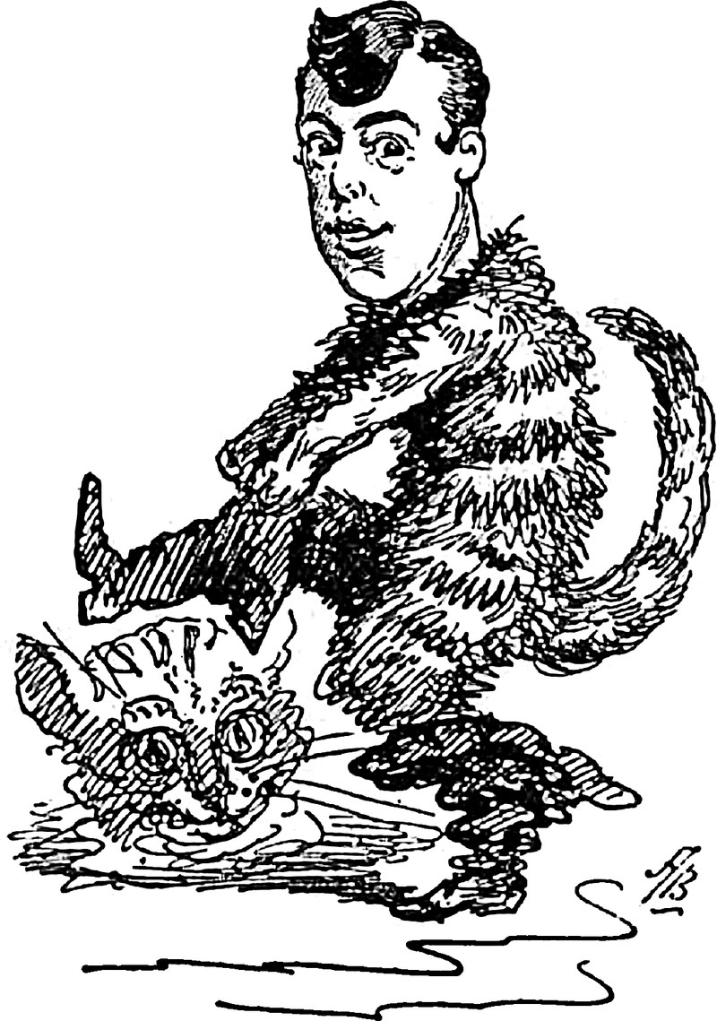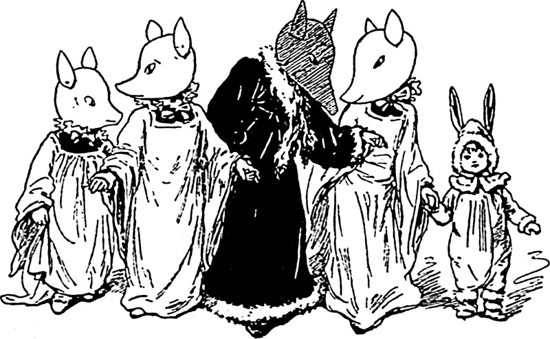 From St. Nicholas magzine, 1910. The caption reads, "A strange-looking, cloaked figure, with a lighted jack-o'-lantern for a head, ushered them into the drawing-room."