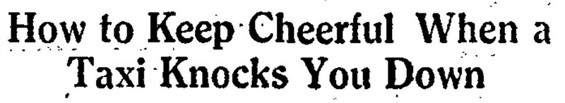"How to keep cheerful when a taxi knocks you down."  From The Children's Newspaper, 1920.