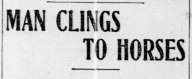 Here's a precursor to Peter Shaffer's Equus. "Man clings to horses." From the Duluth Evening Herald, 1907.