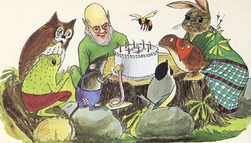 #vintage illustration #elf #anthropomorphism #1960s #birthday cake #illustration #cake