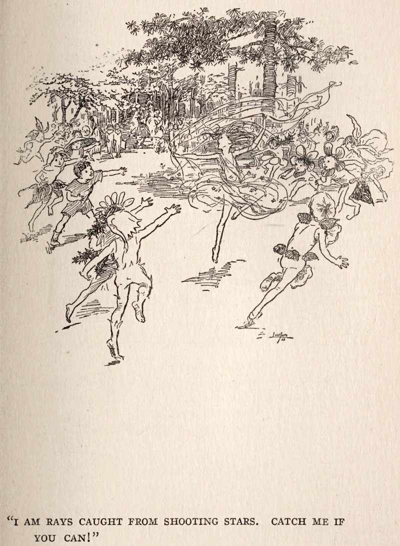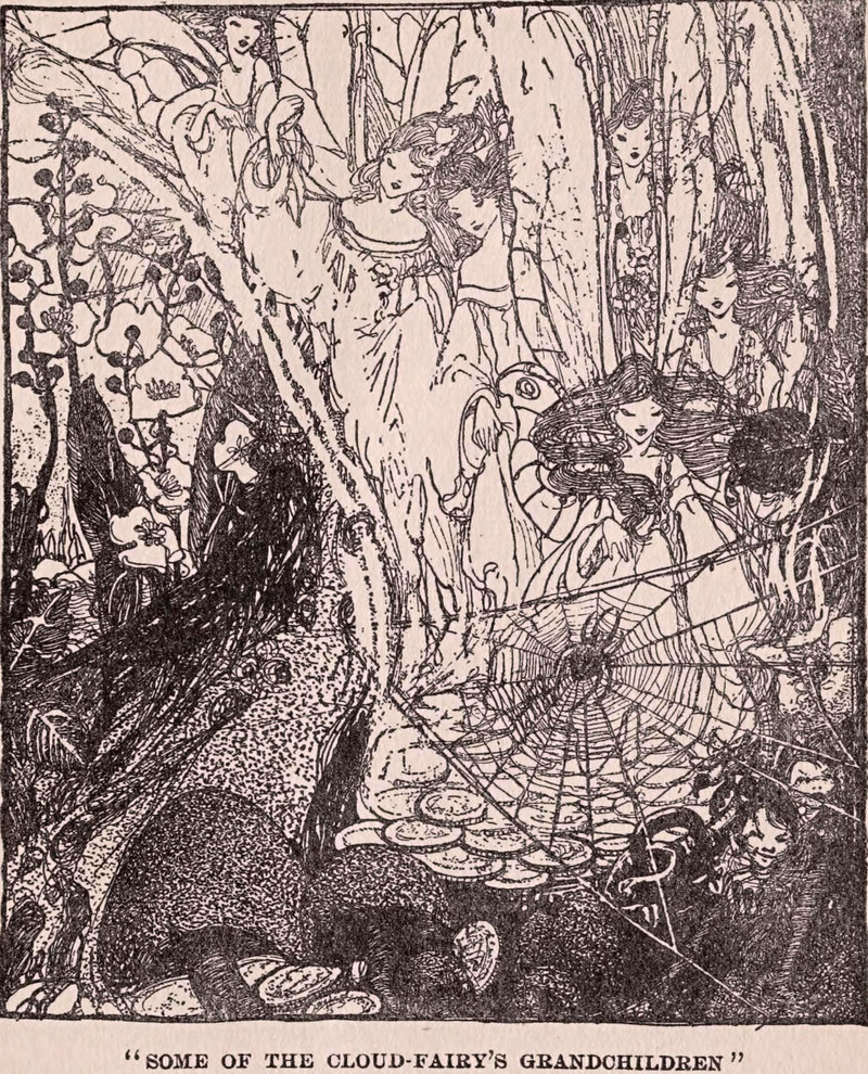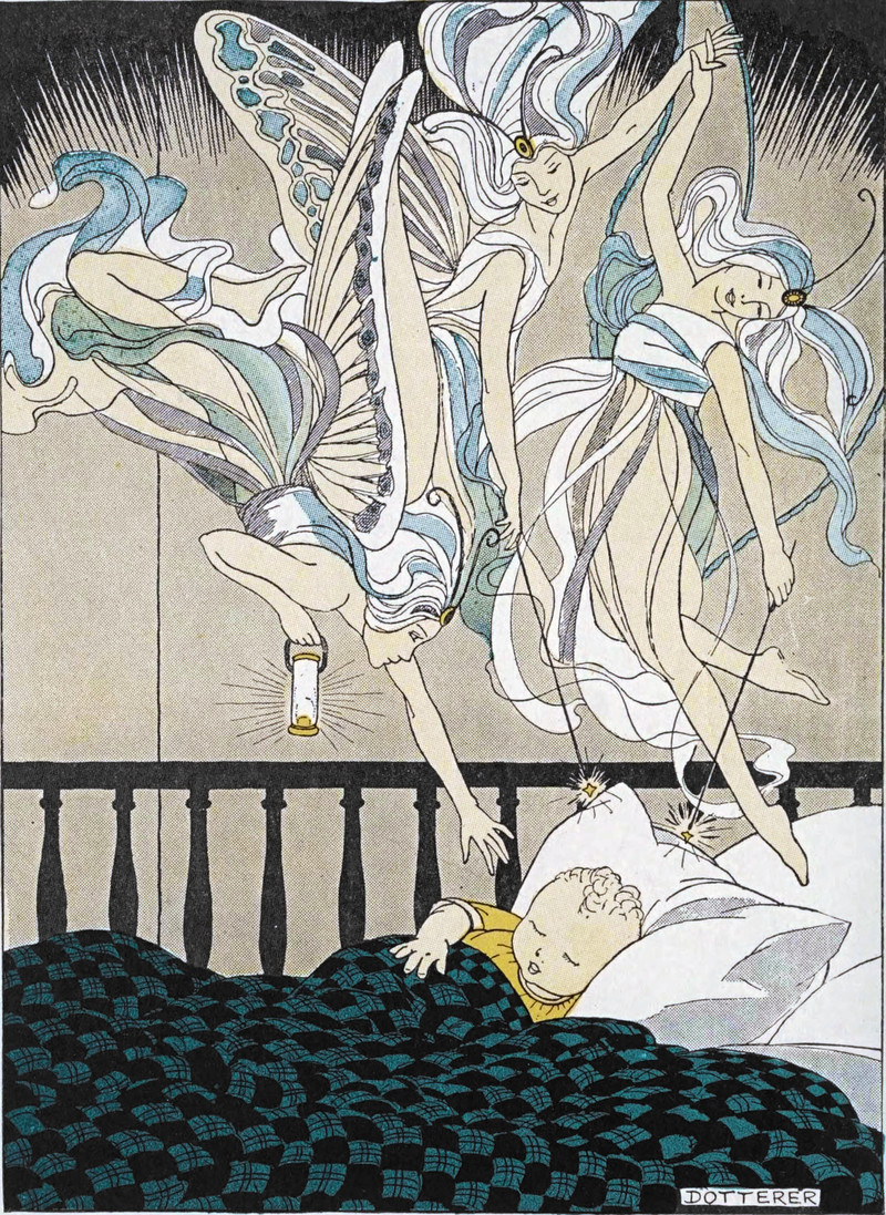 The moon lady's daughter. From Sandman Twilight Stories by Abbie Phillips Walker and illustrated by Rhoda C. Chase, 1918.