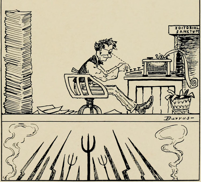 #vintage illustration #pitchfork #vintage yearbook #yearbook #writing #typewriter #illustration #bayonet #1910s