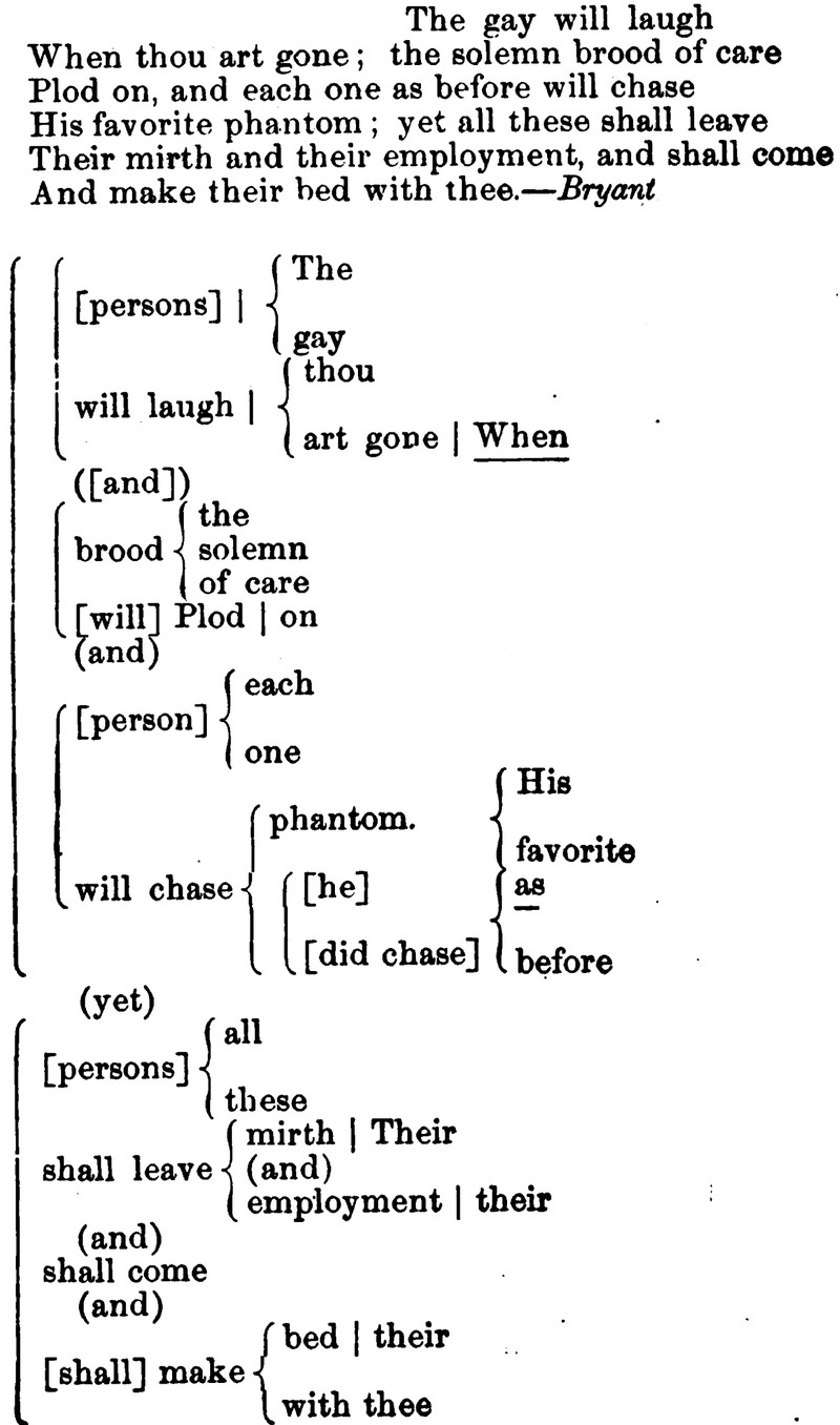 From Grammatical Diagrams and Analyses by Frank P. Adams, 1886.