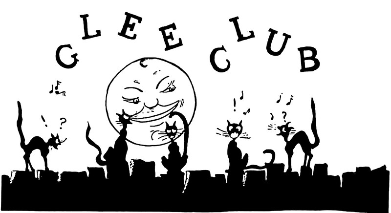 #vintage illustration #man in the moon #cat #vintage yearbook #yearbook #musical animal #1920s #illustration #glee club
