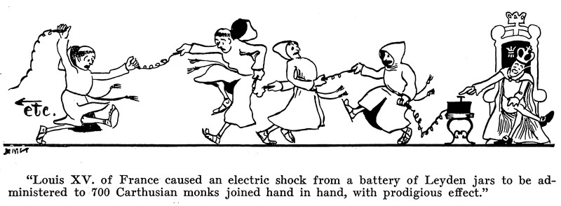 #vintage illustration #monk #king #vintage yearbook #yearbook #electrocuted #electricity #illustration #1910s