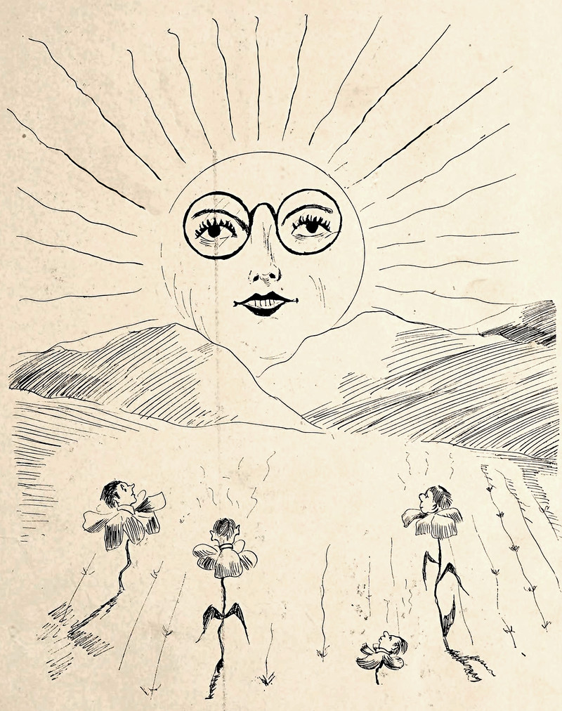 #vintage illustration #sun #anthropomorphism #flower people #vintage yearbook #yearbook #faces in things #human headed #1920s #illustration