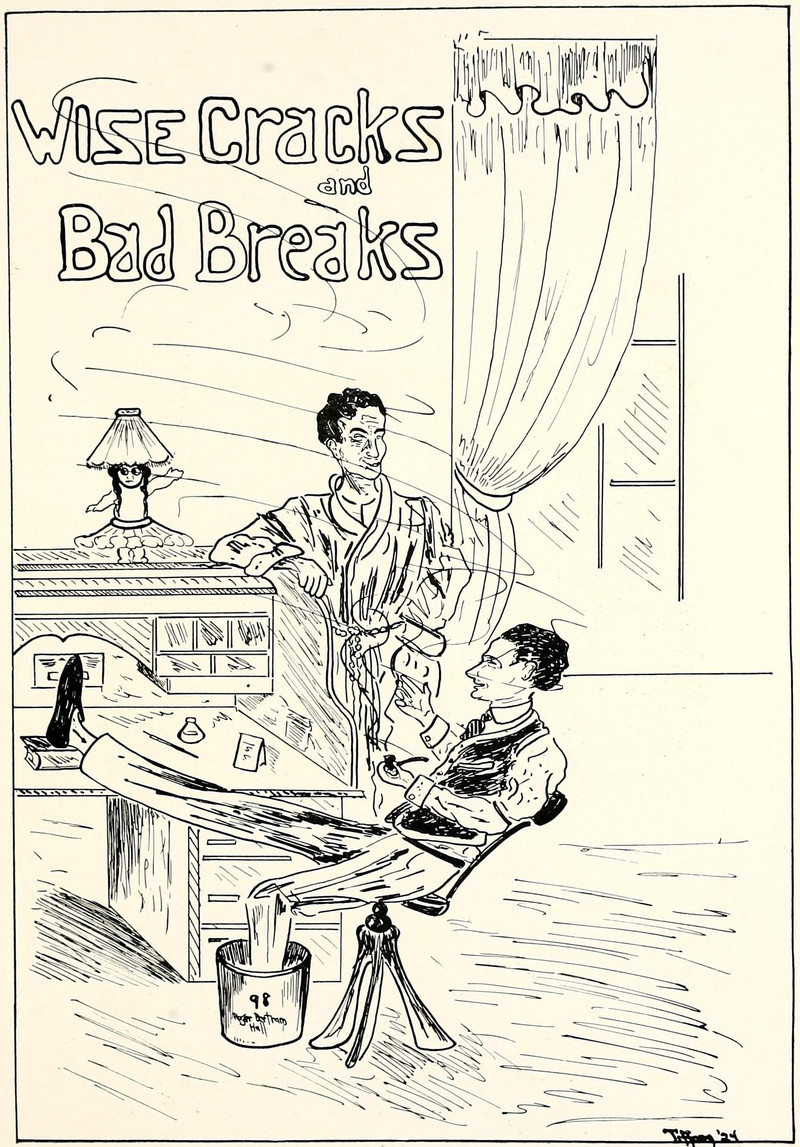 One foot in the trash.  From Bates College's 1924 yearbook.