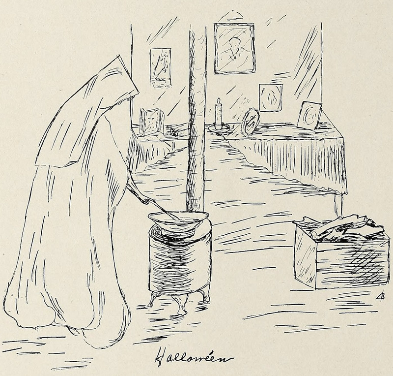 The caption to this says that the ghost medics make the refreshments (dill pickles, peanut butter sandwiches, and black coco) seem even worse. From Olivet Nazarene's 1959 yearbook. See How to Hoodoo Hack a Yearbook.