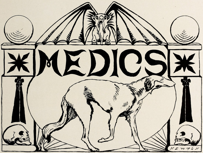 #vintage illustration #bat #skull #dog #vintage yearbook #yearbook #medic