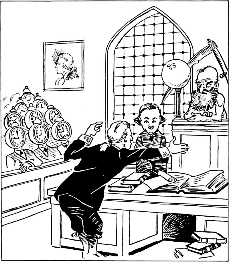 Worrisome: the jury of Father Time's courtroom is not synchronized.  From Wake Forest College's 1932 yearbook.