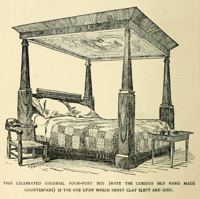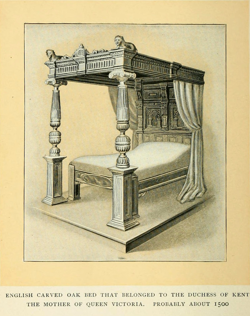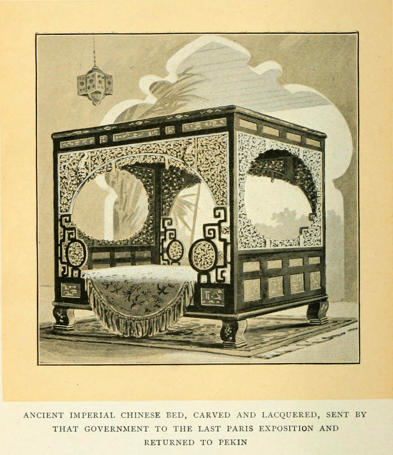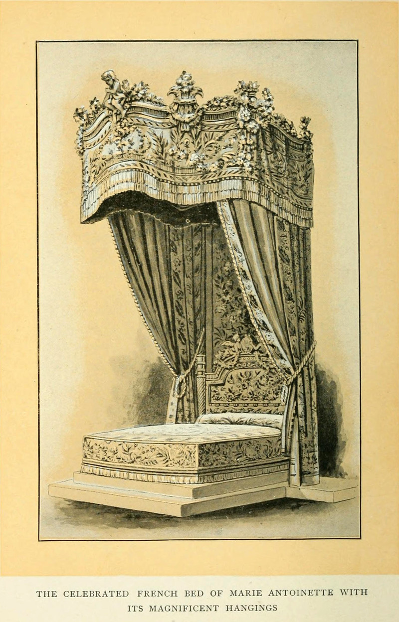 "A French 'Lit de Repose' of the 18th century, arranged with trundle or 'pull out' for their 'couchée' (bed reception)." From The Witchery of Sleep by Willard Moyer, 1903.