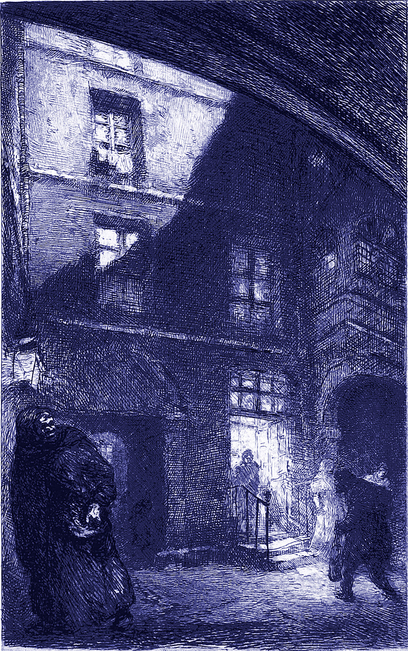 #vintage illustration #death #darkness #dark street #paris #nightfall #illustration