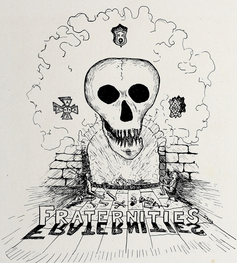 #vintage illustration #skull #fraternity #vintage yearbook #yearbook #secret society