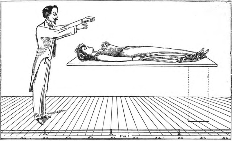 "'Spirit levitation,' photographed under 'test conditions' in Springfield, Mass." From Spiritism and Common Sense by Carlos María de Heredia, 1922.