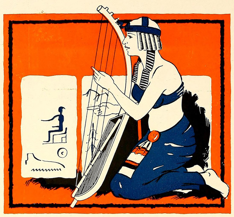 #vintage illustration #egyptian #vintage yearbook #harp #yearbook #1920s #musician #illustration