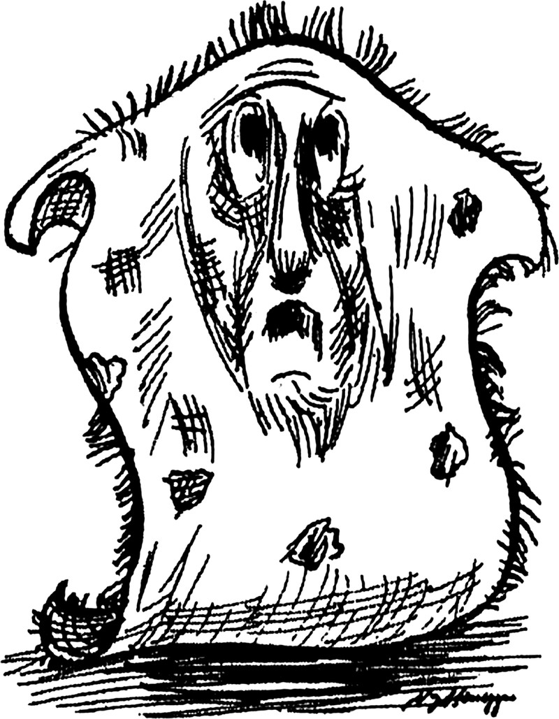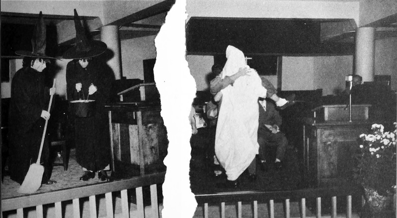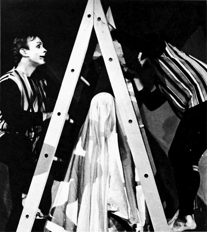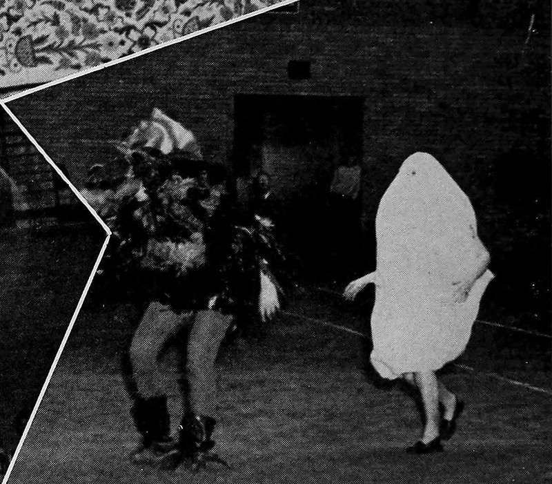 You knew it was unlucky to walk under ladders, but if you're a sheet ghost then it's actually lucky. From the University of North Carolina at Charlotte's 1969 yearbook. See Of Feeding & Caring For Sheet Ghosts.
