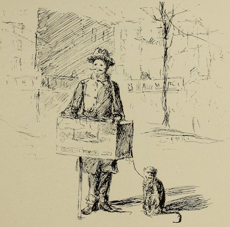 #vintage illustration #vintage yearbook #monkey #yearbook #organ grinder