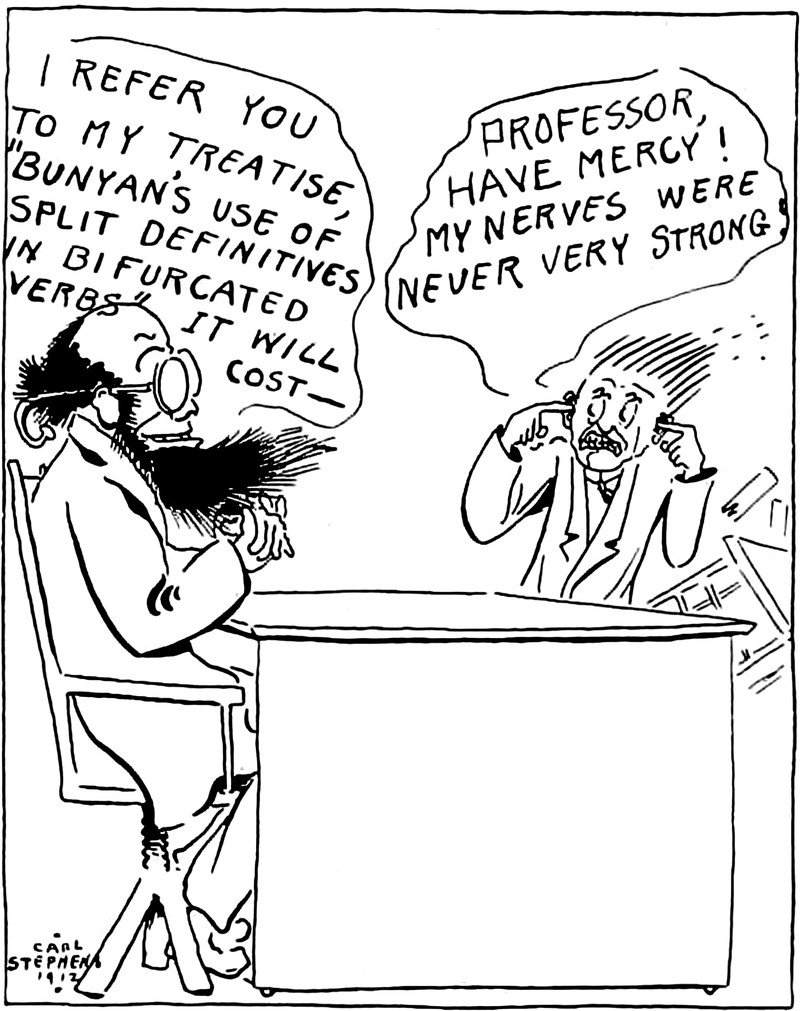 Someone should write a treatise on Bunyan's use of split definitives in bifurcated verbs. From the University of Illinois at Urbana-Champaign's 1912 yearbook.