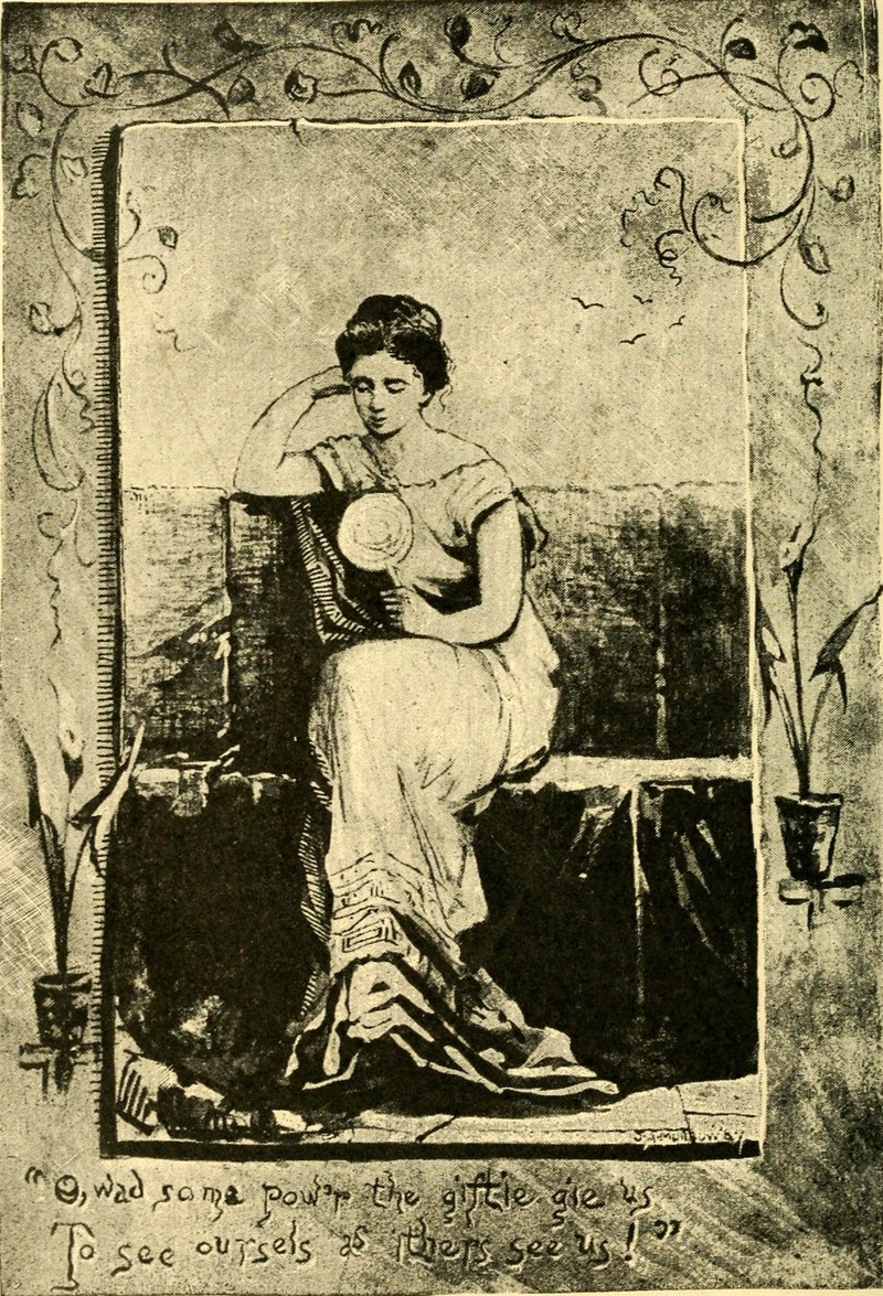 At first glance we assumed she was holding a big lollipop. Alas, it's more likely a mirror, given the caption about seeing oneself as others see one. From Lehigh's 1887 yearbook.