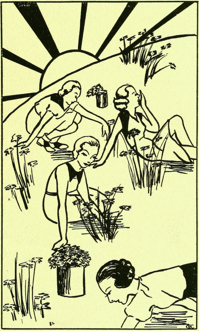 #vintage illustration #sun #vintage yearbook #yearbook #flowers #illustration #women #vintage women